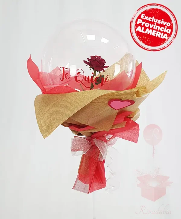 Uno de nuestros productos más elegantes y exclusivos. Nuestro globo efecto Cristal con una rosa en su interior.